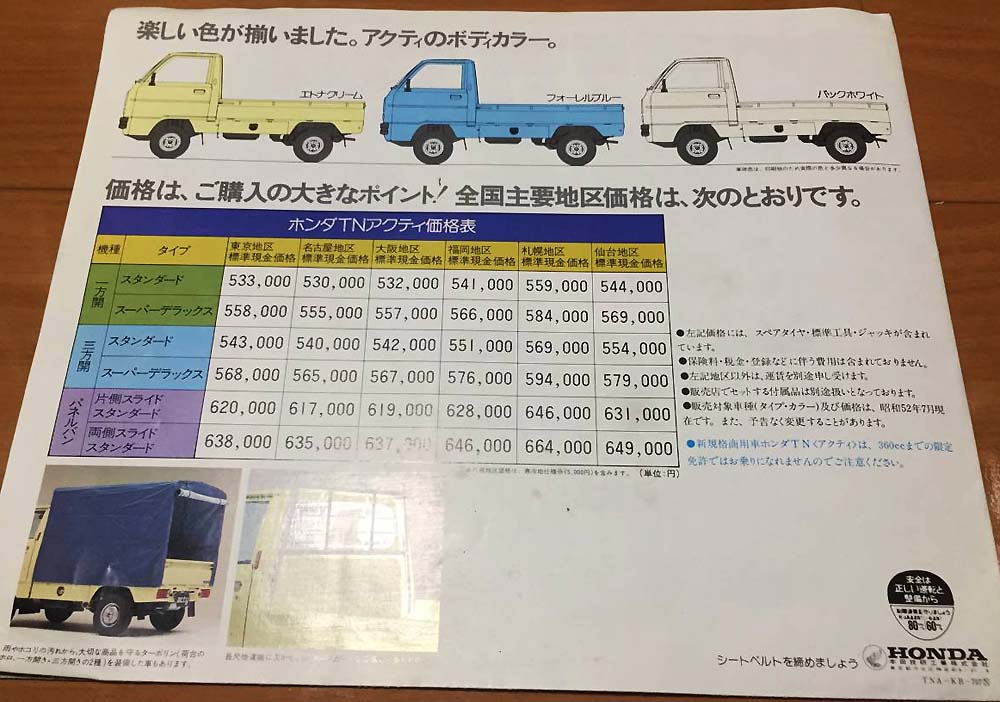 HONDA TN-ACTY ■1977年式 ■形式:H-TA ■1994年〜1995年頃 |