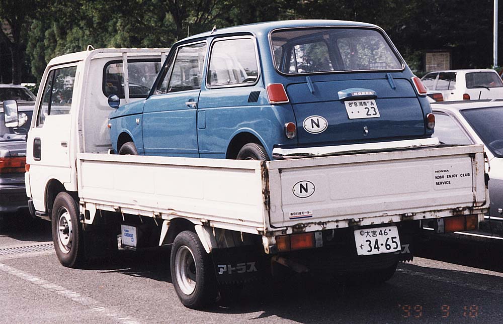 自社の所有車で、工場建物の維持管理用の資材等を運搬する為の物だが、Nの運搬やクラブイベントにも大活躍。 唯一のホンダ以外車だが、限りなく「ホンダ」車を装っていた。 初代と2代目はディーゼル車だったが、共に排ガス規制に適合せず転出、3代目はガソリン車となる。 初代は特にこだわってボディーをクラブカラーのブルーに塗り替え、フロントにはT360のHマークをそのまま写し取り カッティングシートで再現。これにクラブレーシングを積んで、「All Japan HONDA Sports Meeting」に参加した際は、 大勢のエントラントやスタッフの喝采を浴びた。N以外でクラブマークの貼付を許された唯一の車でもある。 2016年、工場の解体によって本来の役目を終えた為、旧テナントに請われて無償で譲渡。 |
