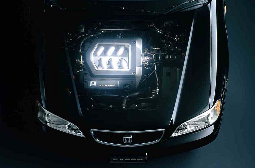長らく低迷していた自社の業績を何とか盛り返し、新たに始めた撮影スタジオ事業も順調になってきた ので16年乗ったビガーの乗り換えで導入。 が新車にはまだ手が届かない為、10年落ちながら走行距離が少ない程度極上車を見つけた。 店主の話ではホンダマンが大事に乗っていたとの事、初体験の本革シートも傷みやヘタリもなく大満足。 CB5ビガ−の様なシャープな吹け上がりは無いものの、3,2リッターV6のパワー225psは強大、 アクセルを踏み込んでVテックが働く辺りはかなりいい音、どこまでも澱みなく加速して行く、 しかも、とっても快適に。 サイズ感も丁度良く、お気に入りの1台だったが、レジェンド投入の為、止む無く放出。 アラブ人の手で中東に旅立った。 |
