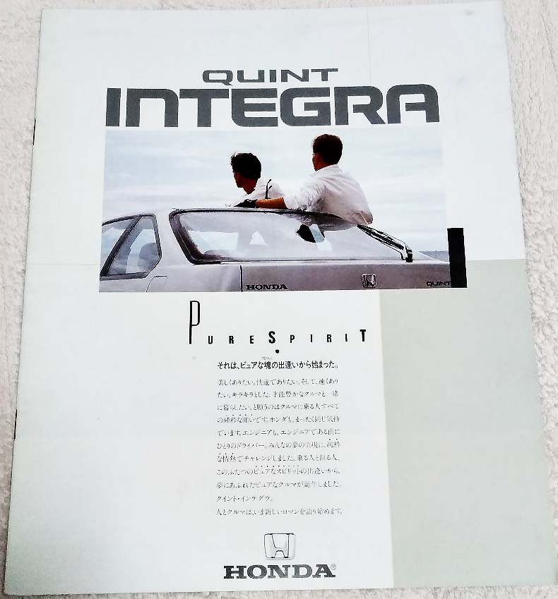カントリーは特に不満もなく日常車としては十分な車だったが、7年目ともなると少々飽きが来て乗り換える事に。 (実はカントリー購入直後に 「QUINT」 が発売になり悔しい思いをしていた。) インテグラ 5ドアは荷室こそカントリーに比べて狭かったが、車としてはかなり進化したものになっていた。 締まった感じのサス、剛性感の上がったボディー、そしてDOHC1600ccエンジンの走りは格段に良かった。 内装もリッチになり、セダンスタイルのデザインは何よりデートカーとしての見た目の押し出しが良かった。 ただボディカラーの白は水垢が付きやすく、すぐに見た目が汚くなり、以後、白い車は二度と買うまいと誓った。 |