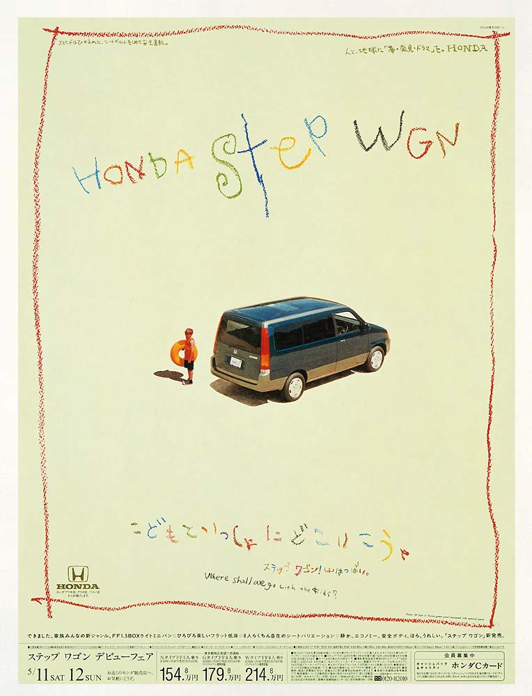インテグラ、コンチェルト共に5ドアで似た様な車種が2台になり、もう少し使い勝手の幅がある車を、 という事でインテグラの入れ替えで新古車を導入。 なんといっても荷室の広さは抜群、リヤシートは床下に完全に格納されフラットになり、 1800mm×900mmのコンパネがそのまま積める優れモノだった。 軽サイズの取り回しの良さは街乗りには非常に便利、が、660ccで38PSはやはり非力、高速走行はかなり辛く、 またエアコンの能力が小さくて効きが悪く、真夏は暑くて堪らなかった。 子供が大きくなったのを機にステップワゴンに買い替えで放出。 |
