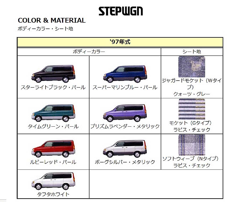 HONDA STEP WGN TypeW 8人乗 ■1997年式 ■形式:E-RF1 ■1997/07/01 〜 2016/07/08 ■ CM |