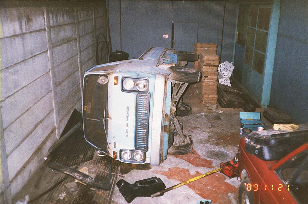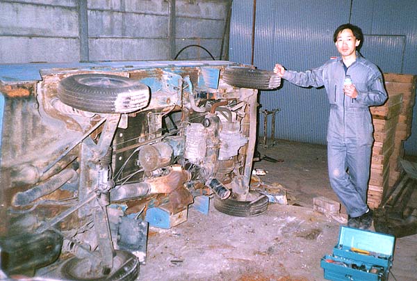 仕事用に使っていたTN。 実に良く走り、空荷の時はリアが暴れてスピンしそうなくらいパワフル。 「商売繁昌」トラックは如何にもホンダらしく元気そのもの。 荷台の腐りが酷くなり、且つダイナモ不調になって、敢え無く解体。 取り敢えずエンジンを外すのに面倒なので横倒しに。働き者の最後はちょっと悲しい。 外したエンジンはバモスオーナーの元へ。 |