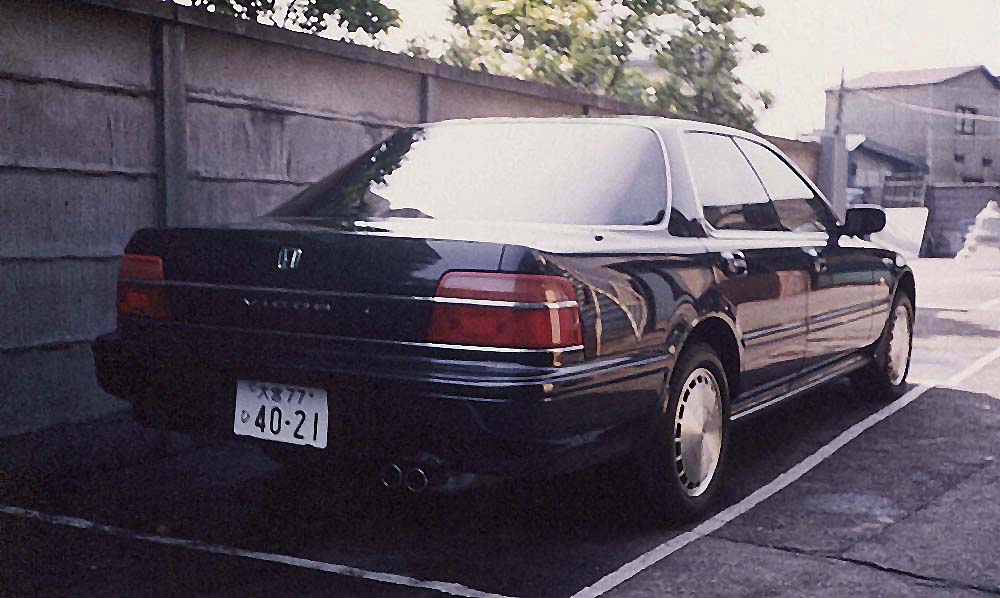 実用上不満が無かったコンチェルトだが、しかしもっと押し出しの良さが欲しかったのと、 バブル崩壊後の不況でディーラーもかなりの値引き下取り額を出してくれたので乗り換える事に。 バブル絶頂期の設計だけあって非常に高品質で贅沢な造り。 天童木工製の本木目パネルは惚れ惚れする美しさ。 2L、160PS、直列5気筒のエンジンは滑らかでウルトラスムーズ、フルスロットルをかけると、 うなる様な官能的な音と共に鋭く加速して行く。 FFミッドシップという構造も効いてか、ハンドリングも気持ち良くガッチリしたボディが 路面に吸い付く様に走る。ボディデザインも何とも言えない色気があり気に入っていた。 後年、フロント破損した際にインスパイアの顔にチェンジ、後姿はビガー、顔はインスパイアという合いの子に。 16年で走行8万キロ程度だったが、さすがにグレードアップをしたくて乗り換える事に。 |